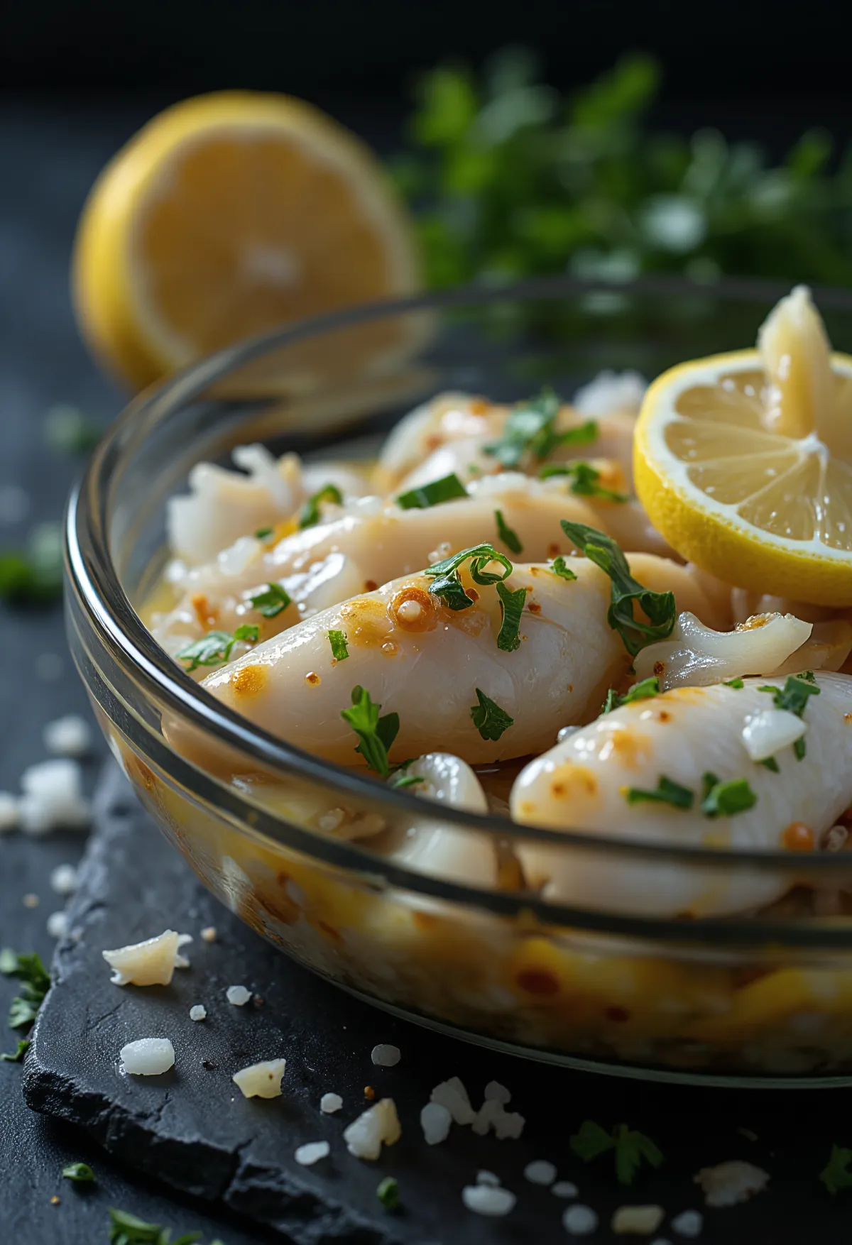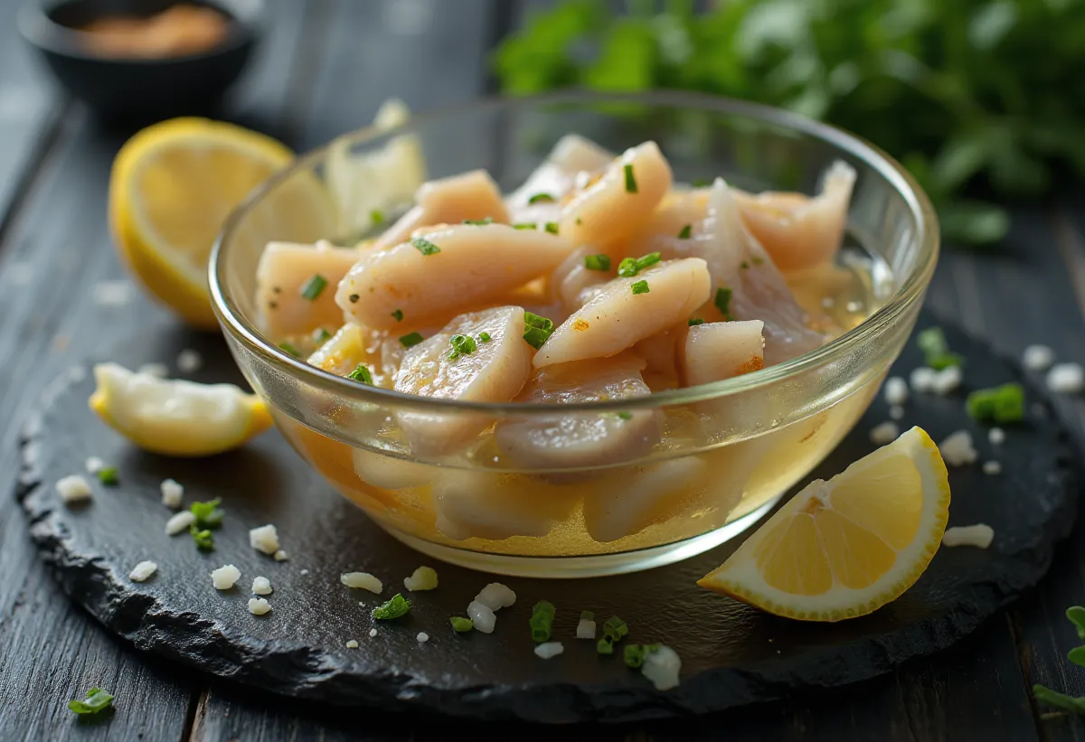 Valmista 10% soolalahus (1 liiter vett, 100 g soola - retseptis on vähem soola, kasuta seda proportsionaalselt). Leota kalafileesid selles 1 tund.